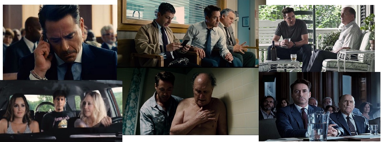 하룻밤 사이에 갑작스레 살해 혐의를 받게 된 아버지, 아버지가 고용한 고향 마을의 변호사가 무능한 것을 참지 못해 행크는 직접 변호를 맡습니다. 어릴 때 자신의 음주운전으로 촉망받는 야구선수의 꿈을 포기해야 했던 형 글렌에 대한 미안함과 벌로써 자신을 소년원에 보냈던 아버지에 대한 서운함이 행크의 마음을 계속 불편하게 합니다. 세월이 지났건만 행크는 아버지를 절대 이해할 수 없었고, 두 사람은 오랜만의 만남에도 아픈 상처를 다시 끄집어내고 싸웁니다. 다행히 재판과 변호를 계기로 대화를 하면서 서로 조금씩 마음속의 앙금도 풀어가지만, 꼬장꼬장 고집 센 판사로서의 아버지 대신 늙고 병든 힘없는 노인으로 아버지의 모습을 마주하게 됩니다. 형제간의 갈등도 일부 나오긴 하지만 아버지와의 화해, 그리고 아버지의 죽음을 계기로 형제간의 관계도 회복합니다.