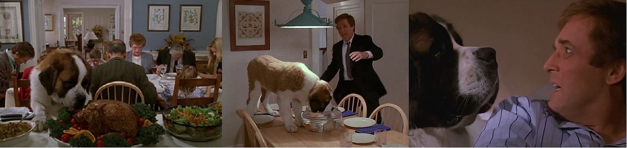 조지는 가족으로 받아들이고도 주인을 찾기 위해 전단지 활동(?)도 열심히 해 보지만 주인은 좀처럼 나타나지 않습니다. 시간은 흐르고 베토벤은 가족의 사랑 속에 눈에 보일 정도로 무럭무럭 자라 어느덧 강아지가 아닌 송아지만 한 성견이 되었습니다. 성견이 되는 과정에서 사건 사고도 많았습니다. 베토벤은 사고뭉치 시기, 사고 마다마다 조지를 실망시키고 화를 돋우지만 아이들에게는 더없이 좋은 친구가 되어 줍니다. 수영장에 빠진 에밀리를 영리한 베토벤이 구해내기도 합니다. 정도 많이 들었습니다. 잠시, 상상을 해 봅니다. 몸무게 70킬로를 넘나드는 대형견이 퇴근하는 주인을 반기며 달려와서 안기면 일단은 멈칫, 무섭지 않을까요? 경험상, 제가 키웠던 강아지보다 10배나 큰 강아지의 극진한 반가움을 대하면 본능적으로 멈칫할 듯합니다. 강아지를 키워 본 사람들은 이해가 갈 법한 장면들이지만 강아지의 진심인 반가움과 호기심에서 나온 행동들이 당황스러운 건 사실입니다. 그렇지만 그럼에도 가족이기에 함께 사랑하며 사는 겁니다. 조지도 서서히 베토벤을 진심으로 사랑하며 가족으로 대하기 시작합니다.