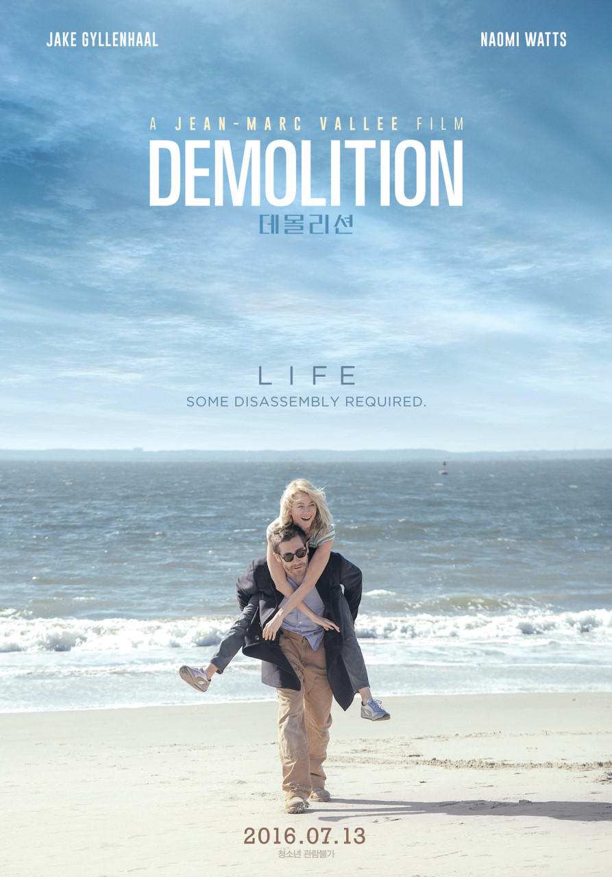 가장 가까운 가족이, 아내가 죽었습니다. 그런데 하나도 슬프지 않고 오히려 놀랍도록 아무렇지가 않습니다. 혼자 화장실에서 거울을 보며 슬피 우는 표정을 연습도 해보지만 도대체 눈물이 나오질 않습니다. 그전처럼 회사 출근도 똑같이 하고 일상이 아무런 변화 없이 돌아갑니다. 단지 주변 사람들의 태도가 달라졌을 뿐입니다. 교통사고로 아내를 잃은 투자 분석가 데이비스(제이크 질렌할)의 이야기, 영화 데몰리션 Demolition 은 그렇게 시작이 됩니다. 데몰리션 Demolition은 무너뜨리다, 파괴하다, 철거하다를 의미합니다. 아내의 죽음으로 자신의 삶의 터전을 밑바닥부터 철저히 다 부숴버리는 데이비스. 감당하지 못하는 자신의 감정의 변화와 아내의 죽음을 받아들이기까지의 힘겨운 과정을 담아내고 있습니다.