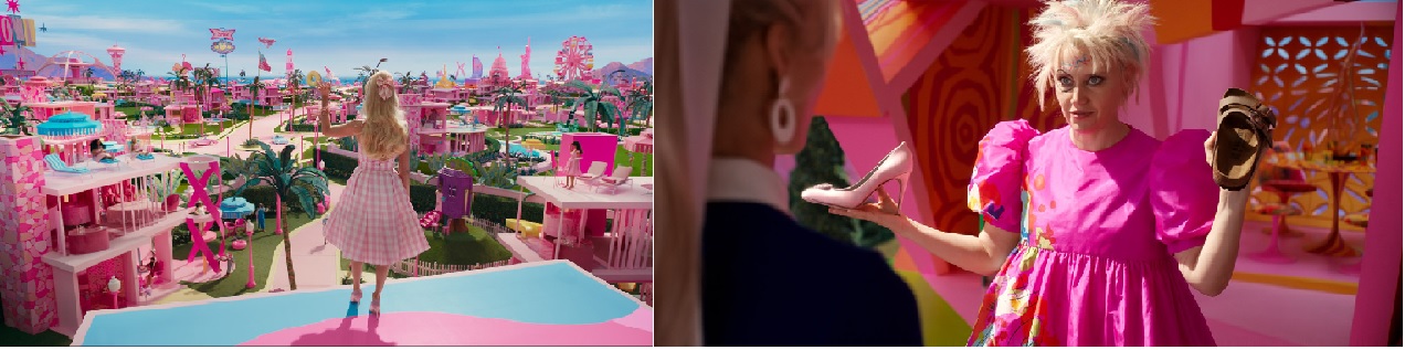 <바비랜드>의 바비들은 원하는 것은 무엇이던 될 수 있고 다양한 직업을 갖고 있습니다. 바비랜드에 살던 바비가 어느 날 현실 세계와 연결되면서 삶에 균열이 발생합니다. 자신의 변화가 신경 쓰여 이를 해결하기 위해 켄과 함께 바깥세상으로 나가면서 겪게 되는 이야기가 영화의 줄거리이지만 사실은 마텔의 핸들러 부부가 딸을 위해 바비 인형을 만들었던 과정과 그들의 생각이 녹아 있는 듯합니다.
