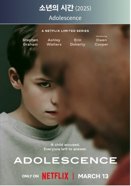 넷플릭스에서 영국드라마 4부작 <소년의 시간>은 너무도 충격적입니다. 청소년기 아이들의 학교 생활과 그들의 생각을 보는 내내 놀랍고, 마음이 무겁고, 막막했습니다. 문제의 심각성을 고려해서 영국의 키어 스타머 영국 총리가 <소년의 시간>을 학생들이 볼 수 있도록 해야 한다는 정치권 주장을 받아들이면서 교육청에서 판권을 사고 중고교 과정에서 아이들에게 보게 했다는 것도 놀랍고, 원 테이크의 연출 기법도 굉장히 신선(긴장감을 놓을 수 없게 합니다.)했습니다. 전 세계가 공통으로 겪고 있는 또 하나의 질병 혹은 재앙이 아닐까 싶을 정도로, 아이들의 현실이 고스란히 그려지고 있습니다.