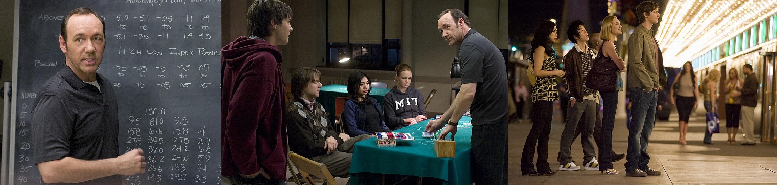 MIT 졸업과 동시에 하버드 의대 입학을 앞둔 수학천재 벤(짐 스터게스). 그의 천재적 수학능력과 침착함을 알아챈 미키(케빈 스페이시) 교수는 벤에게 MIT 블랙잭팀에 합류할 것을 권합니다. 가난한 의대 지망생에게 30만 달러라는 등록금은 현실적으로 해결하기엔 너무나 큰돈이었고 장학금을 받기엔 요원해 보였습니다. 하버드 의대에 꼭 가고 싶은 벤은 자신의 아르바이트로는 턱도 없는 학비와 생활비를 해결하기 위해 30만 달러만 벌면 그만두겠다고 마음먹습니다. 벤은 결국 유혹을 거절하지 못하고 팀에 들어갑니다. 블랙잭의 허점을 노린 미키 교수는 최고의 수재들만으로 팀을 구성해서 ‘카드 카운팅’ 기술을 익히게 합니다. 그들만의 ‘비밀 암호’를 만들고 철저히 훈련시킵니다.