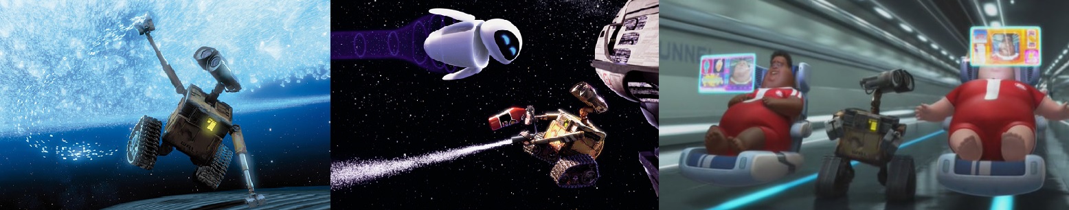 인간에게 안락한 상태와 무기력한 상태의 차이는 무엇일까요? 우주에서 고향별을 그리워하며 생활하는 인간들은 모두 짧은 팔과 다리를 갖고 있습니다. 스스로 움직이기 힘든 형태의 몸으로 안락의자에 앉은 채 기계가 가져다주는 음식을 먹고 보여주는 대로 문화를 향유하며 시간을 보냅니다. 월-E가 위험할 수밖에 없는 이유는, 이브가 소중하게 여기는 식물이 유일하게 스스로 자생하는 생명체이기 때문일지도 모릅니다. 월-E의 소동으로 인간들은 자신의 모습에서 깨어나고, 아주 오래전 옛날처럼 스스로 채소도 키우고 혹시 모를 피자나무도 심고 싶어합니다.