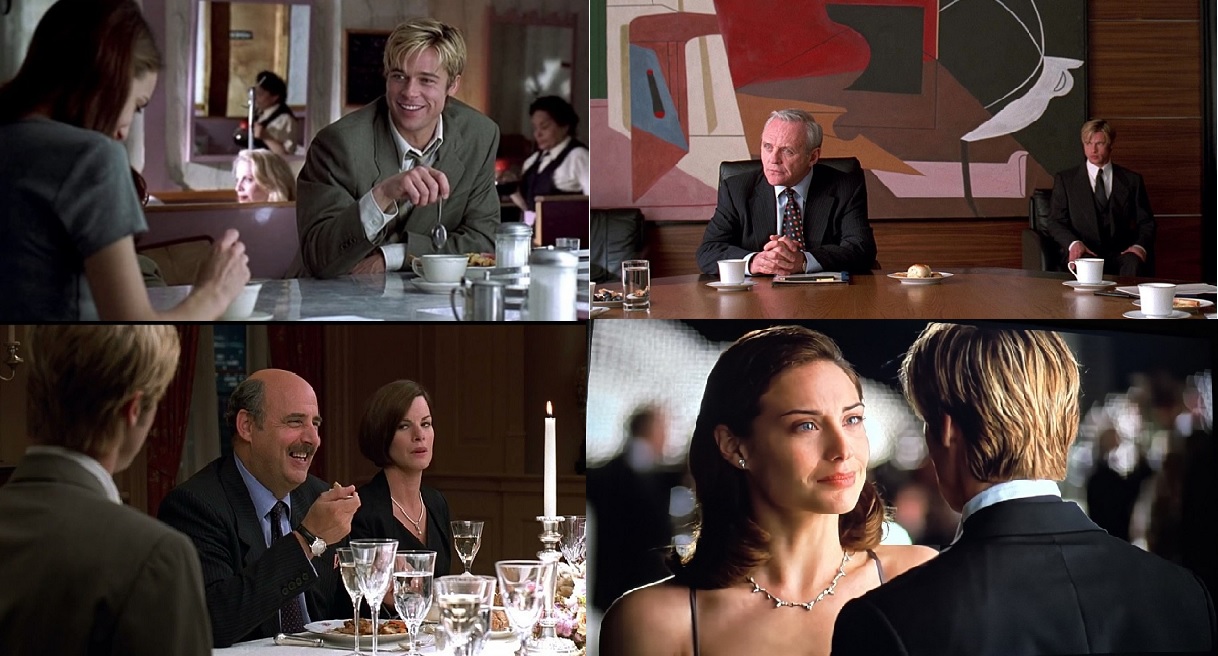 둘만의 계약으로 윌리암은 저승사자를 가족과 회사에 조 블랙(브래드 피트)으로 소개합니다. 갑자기 등장한 조를 대하는 가족들, 회사 직원들 - 잠깐 카페에서 만났던 수잔을 제외하고 탐탁지 않습니다. 조는 조금씩 인간 세상에 적응합니다. 때로 엉뚱하고 어리숙해 보이는 조의 행동들은 순수함이 느껴집니다. 무작정 꽃다발을 들고 수잔을 찾아가 자신이 사랑을 하고 있다는 사실을 인정하는 것이나 멀쩡하게 차려입고 피넛버터를 맛깔나게 먹는 모습은 미소가 지어집니다. 죽음을 상징하는 저승사자 조의 모습을 보며, 우리가 살면서 경험해 볼 수 없는 죽음이란 부정적인 것을 보다 친근한(생각보다 가까이 있다는) 것으로 달리 바라보게 됩니다.