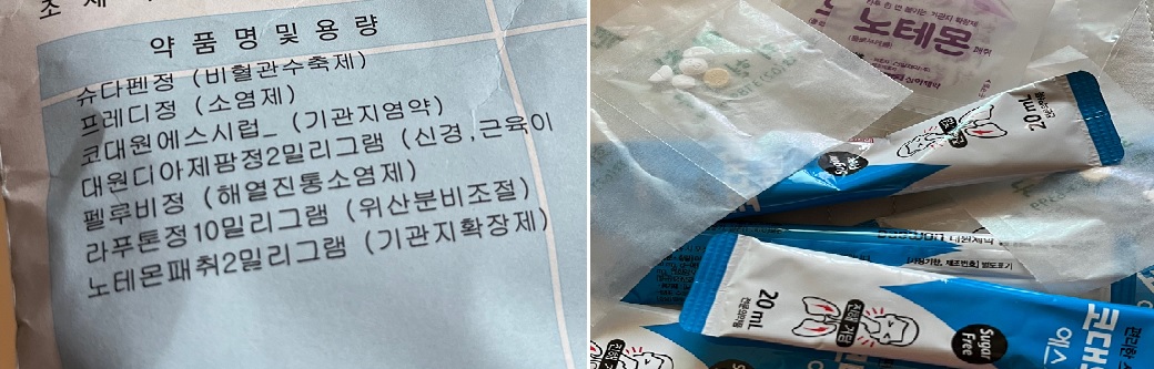 가족의 확진으로 이미 격리를 해본 상태라 시작이 그리 어렵지는 않았습니다. 단, 약을 먹어야 하니 식사가 문제였습니다. 최소한의 쓰레기 발생을 목표로 먹고 싶은 것이 아닌 쓰레기가 적게 나오는 것을 골라 먹습니다. 코로나에 대한 약은 현재 정확한 치료제가 없는 상태이고 60대가 아니라서 소염제와 기관지염 약, 근육이완제, 해열진통 소염제, 위산분비 조정 약, 기관지 확장제(기침 방지/야간 수면에 도움)를 받아왔습니다. 약을 3일 간만 주는 이유는 3일 후 사람마다 증상도 달라진다고 합니다.