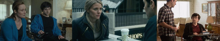 트레버는 여행 중 계획에 없던 아빠를 만나러 갑니다. 자신의 병을 알고 집을 나가버린 아빠가 보내는 편지의 진실을 알고 싶어 하는 트레버, 하지만 편지의 진실을 알고는 화를 내고 웁니다. 그 화풀이는 고스란히 벤을 향합니다. 감정은 틀어지고 시간당 9달러에 맞는 간병인과 환자의 관계만 유지하라고 소리치는 트레버, 너무 마음이 아픈 장면입니다.